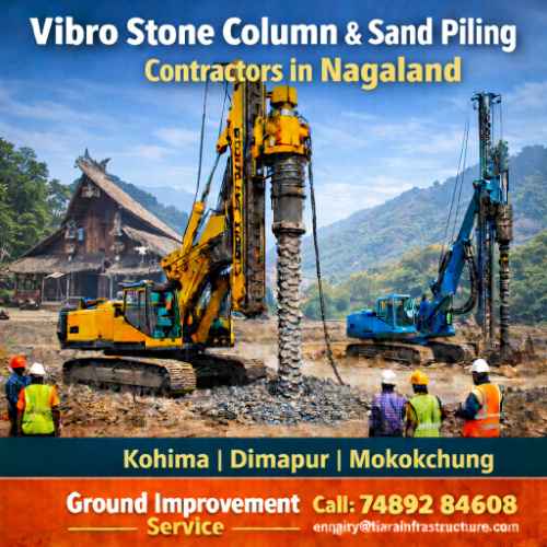 Vibro Stone Column Piling Contractors in Nagaland? Tiara Infrastructure Pvt Ltd provides expert Vibro Stone Column installation and ground improvement services across all major districts and towns of Nagaland. Our advanced vibro piling solutions ensure durable foundation support, improved soil strength, and reliable long-term performance for residential, commercial, and industrial projects.