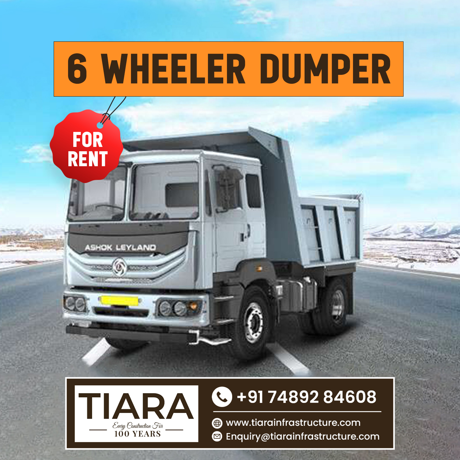 Tiara Infrastructure Pvt Ltd offers 6 Wheeler Tipper Dumper rental services in Sikkim for construction, mining, and infrastructure development. We serve all towns and districts with reliable, fuel-efficient machines.